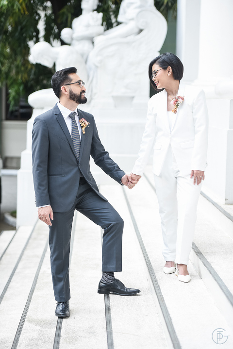 Pao and Vae woke up in the grandeur of the historic Manila Hotel, their chosen spot for the morning preparations. The day began with Pao and Vae dressing in their modest yet elegant outfits. Vae chose a simple white suite. Pao, looking dashing in a crisp white shirt and a black suit.